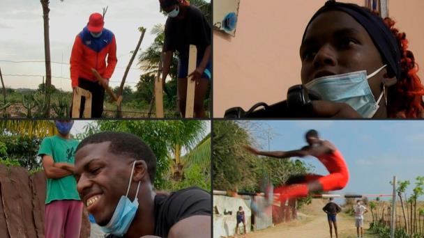 Estos hermanos cubanos sueñan con destrozar los récords mundiales como su ídolo, Javier Sotomayor. Con las escuelas deportivas cerradas en Cuba por el covid-19, entrenan en un improvisado cajón de saltos en un terraplén de El Roble.