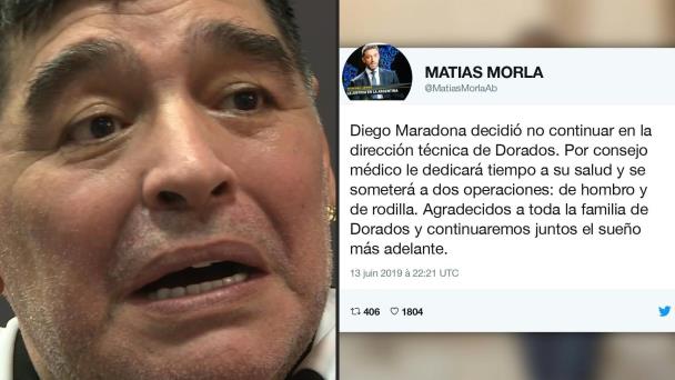 El astro argentino del fútbol Diego Armando Maradona decidió dejar la dirección técnica del club mexicano de segunda división Dorados, del norteño estado de Sinaloa, al que entrenaba desde septiembre pasado. of Diego Maradona