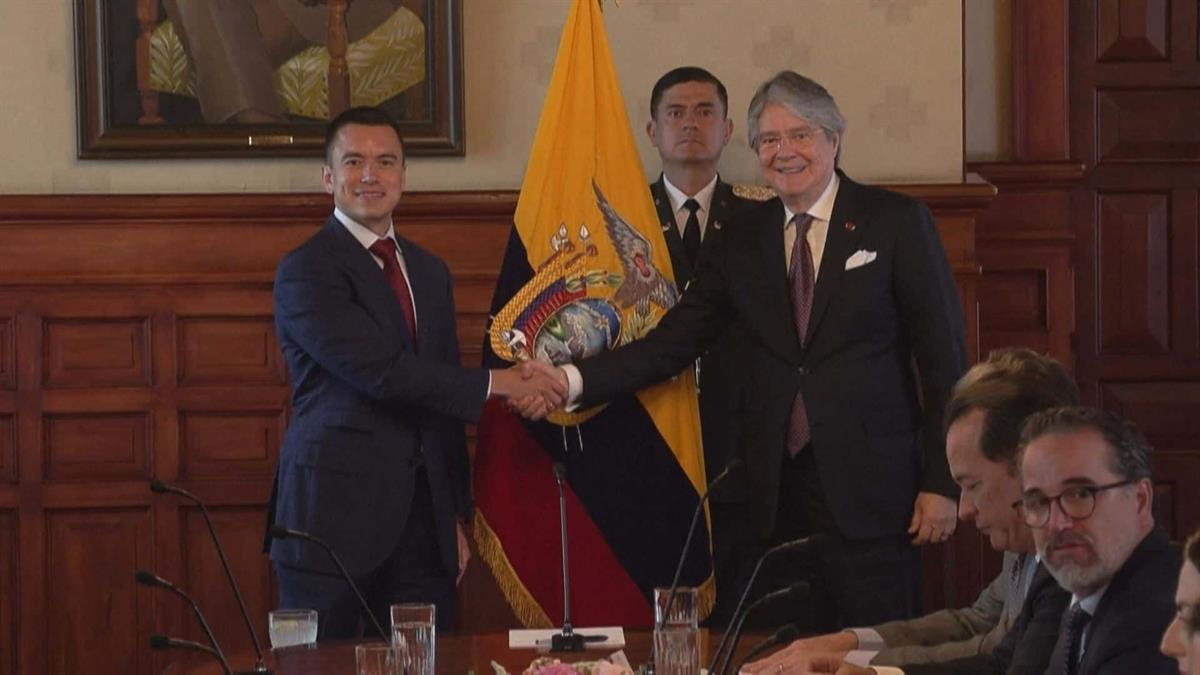 "Tiene que haber una transición correcta de un gobierno al otro con cooperación real por el bien de los ecuatorianos", declaró Noboa junto a su predecesor.