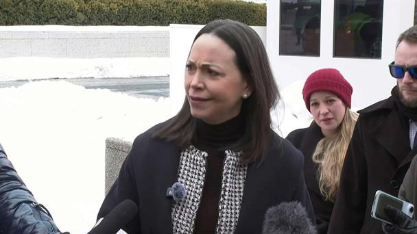 VIDEO | "Nadie tiene fe" en la presidenta interina de Venezuela, dice Machado tras reunirse con Rubio