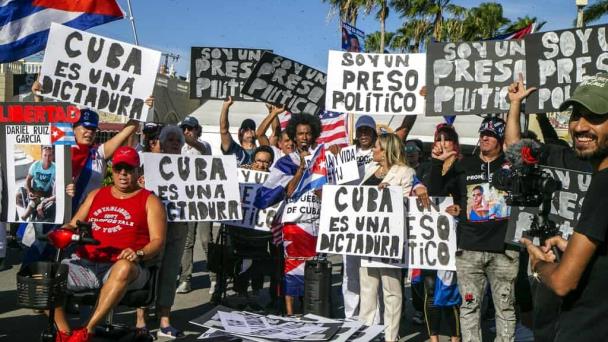 Los tres mensajes fueron repetidos durante los primeros actos celebrados hoy en Miami con motivo del primer aniversario de las protestas pacíficas antigubernamentales que sacudieron Cuba el 11 de julio de 2021.