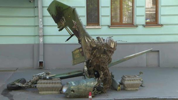 "Me hace feliz", dice, con una sonrisa en la cara, después de inspeccionar el ala de un avión de combate ruso derribado.