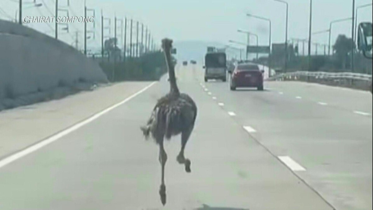 El avestruz macho, de seis meses, corrió por una autopista de tres carriles en la provincia costera de Chonburi, en Tailandia, mientras los automóviles y camiones pasaban a toda velocidad rozando al ave no voladora, según un video publicado por un hombre que conducía justo detrás de ella.