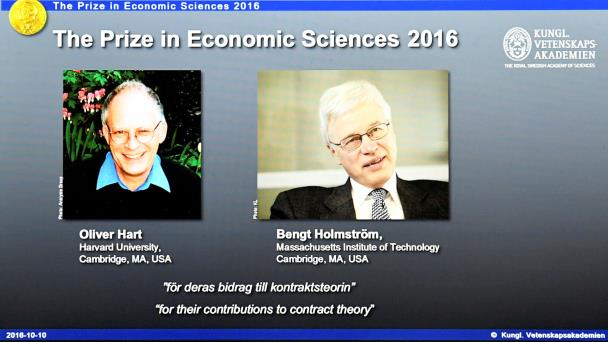 El británico-estadounidense Oliver Hart y el finlandés Bengt Holmstrom fueron galardonados el lunes con el premio Nobel de Economía por sus investigaciones sobre los contratos, que tienen múltiples aplicaciones en diversos ámbitos de la vida real.