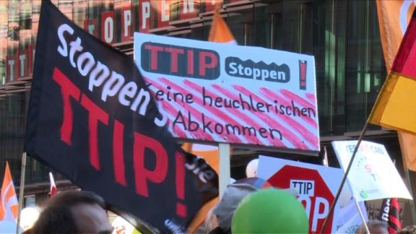 Decenas de miles de alemanes se movilizaron en Berlín en rechazo a los acuerdos comerciales de gran amplitud que la Unión Europea negocia con Estados Unidos y Canadá. Consideran que los proyectos reducen la acción del Estado con respecto a los mercados.